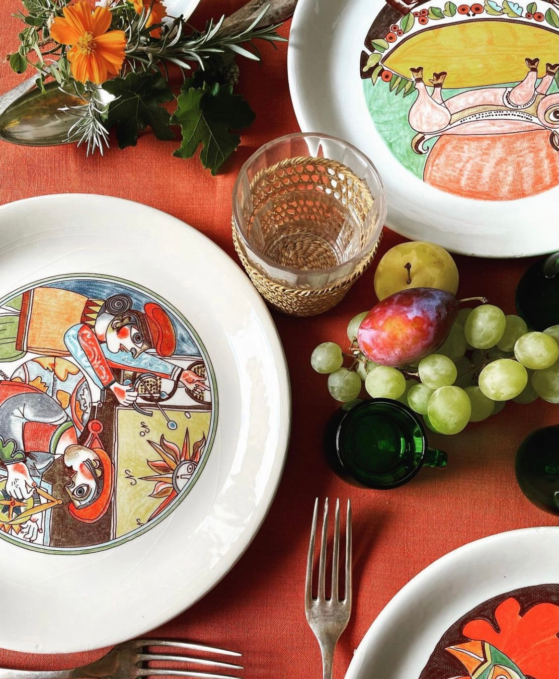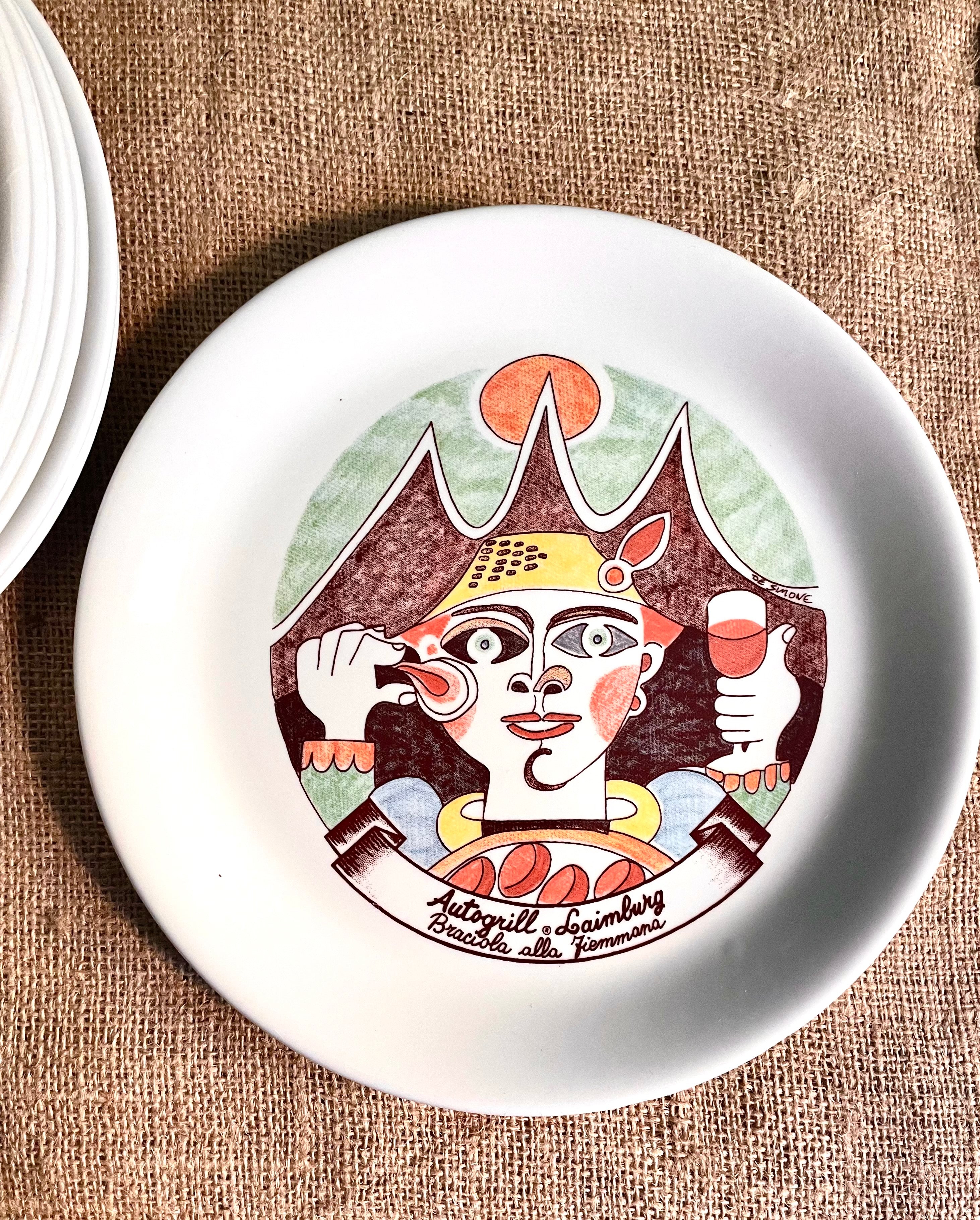 Piatto piano in ceramica del Buon Ricordo, vintage anni Ottanta, De Simone.
